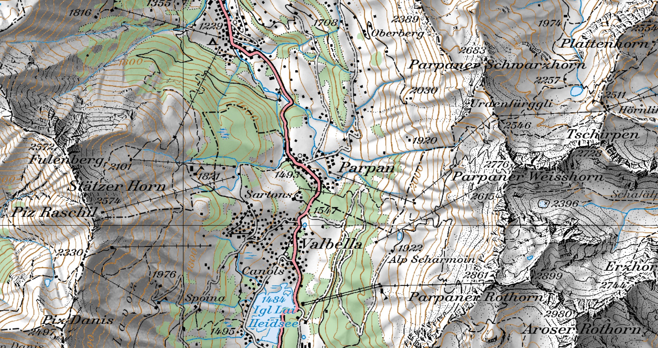 Geoportal Gemeinde Churwalden: Verschiedene Karten mit unterschiedlichen Informationen.